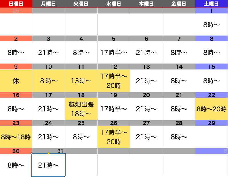 月曜日、木曜日 21時〜