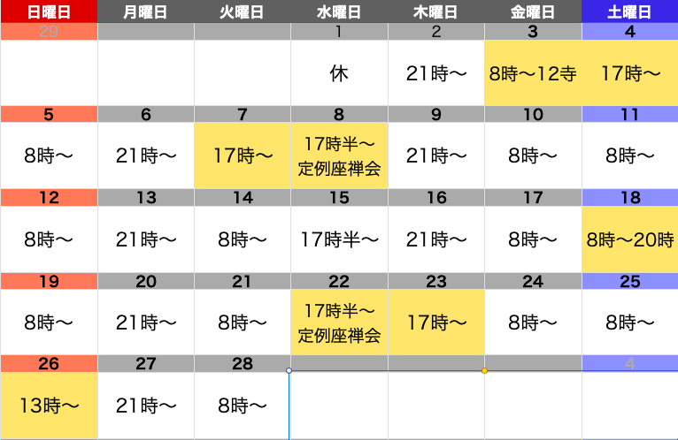 第2、4水曜日の20時より坐禅会をしています。予約は不要です。