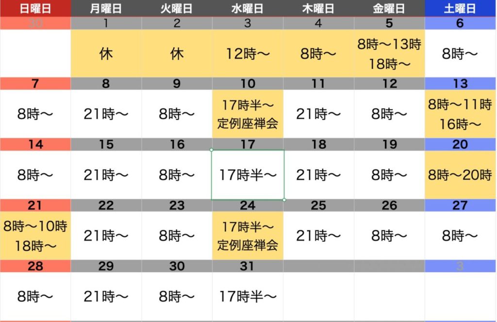 定例坐禅会のお知らせ