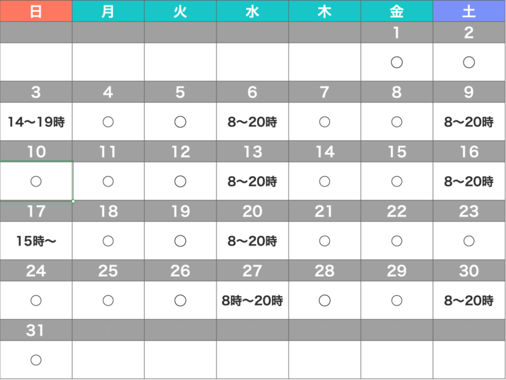 詳しくはカレンダー画像をご参考ください。